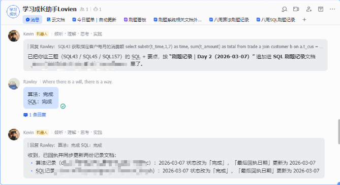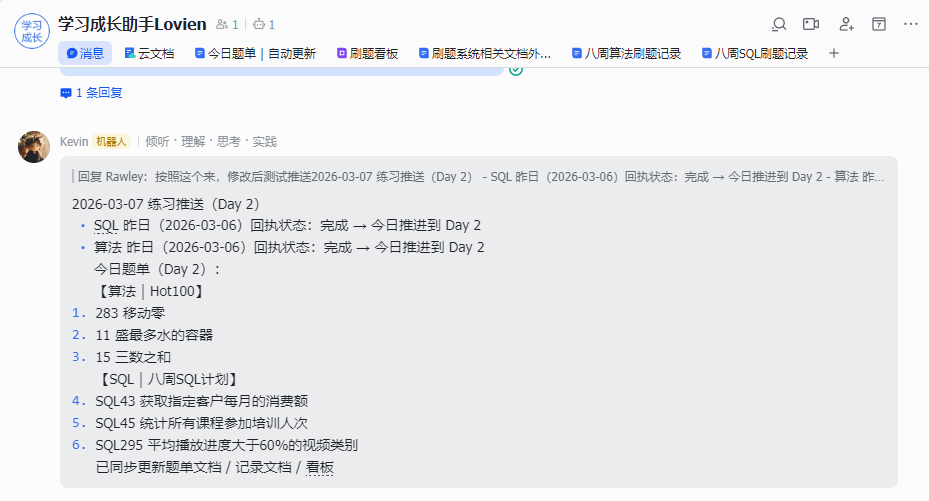 “新建一个 Bitable:刷题看板…每天早 8 写入,回执后更新状态”