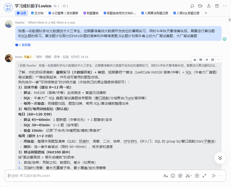 我最后用 OpenClaw 里搭建的 Agent(学习成长助手 Lovien)在群聊里一步步把它“聊出来 / 改出来 / 跑起来”: