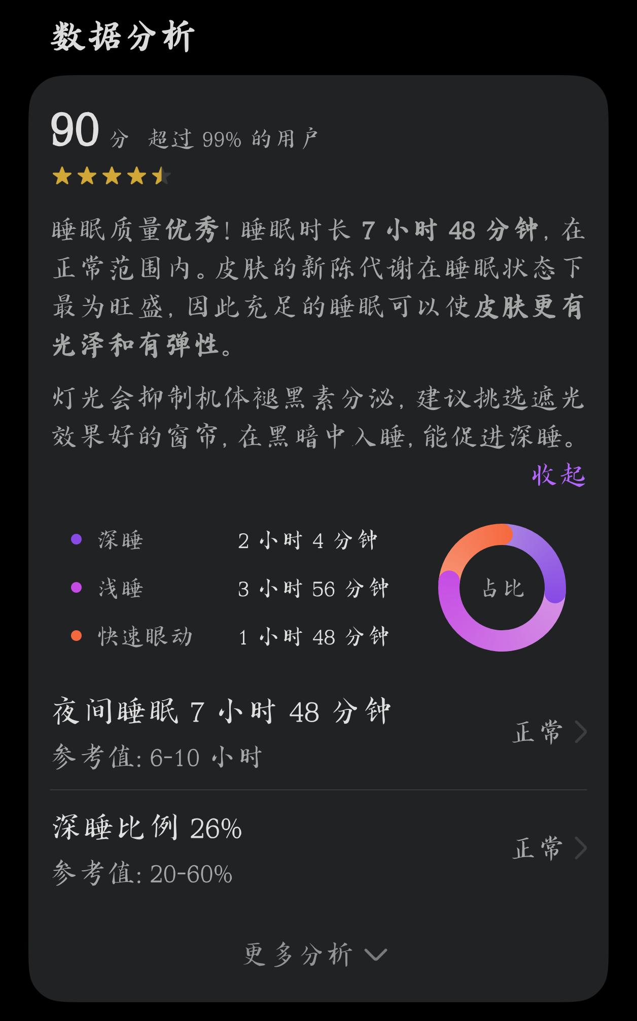 最近也是有两天睡眠质量到 90 分了
